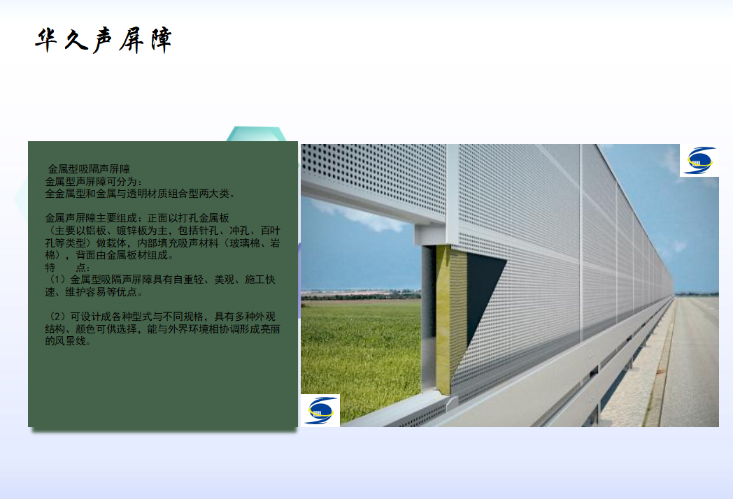 本公司生產: 鐵路聲屏障、 高鐵聲屏障、 地鐵聲屏障、 公路聲屏障、 高速公路聲屏障、 城市快速路聲屏障、 橋梁聲屏障、 高架橋聲屏障、 廠區聲屏障、 小區聲屏障、